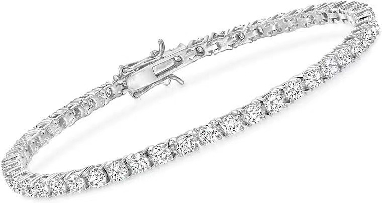 เครื่องประดับสั่งทำ 0.1CTRound Lab Grown White Diamond สร้อยข้อมือเทนนิสคลาสสิกเครื่องประดับเพชร