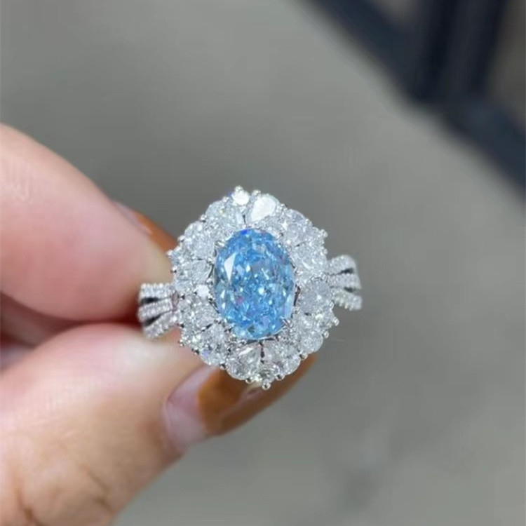 Lab Diamond Jewelry Blue Oval Cut แหวนหมั้น แหวนแต่งงาน แหวนเพชรแฟนซี