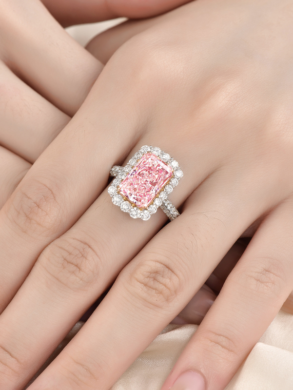 Lab Grown Pink Diamond Engagement Ring แหวนแต่งงาน Radiant Cut Design