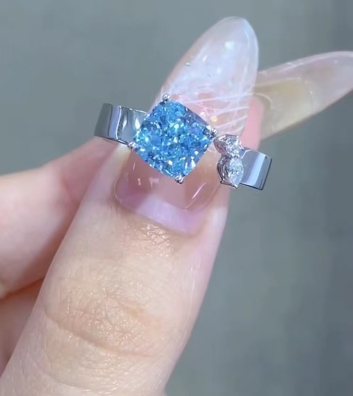 | ชื่อสินค้า | แหวนเพชร CVD Cushion Blue |