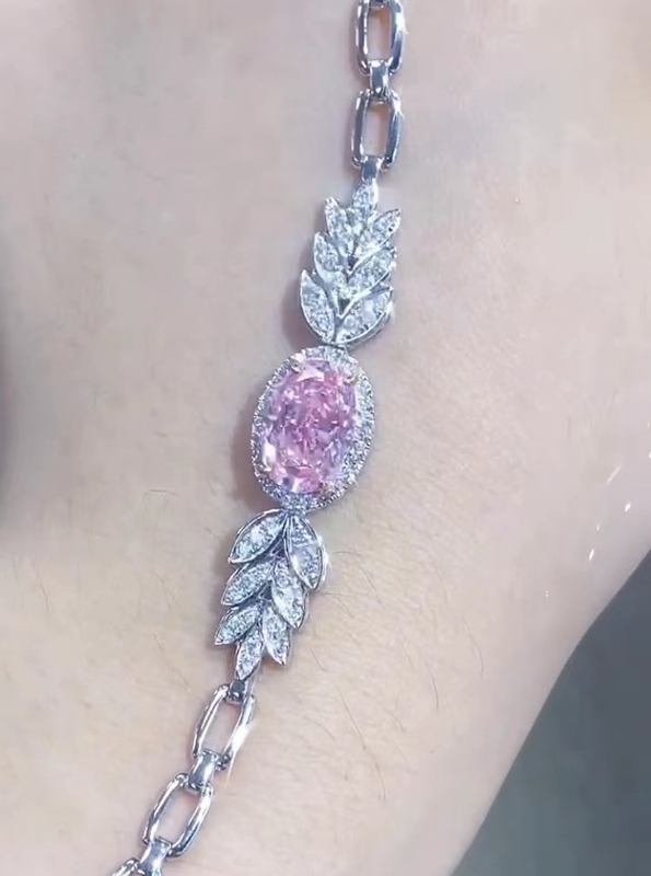 สร้อยข้อมือเพชร พืชเพชร การผลิตเครื่องประดับ สร้อยข้อมือเพชรสีชมพู รูปทรงโอวาล